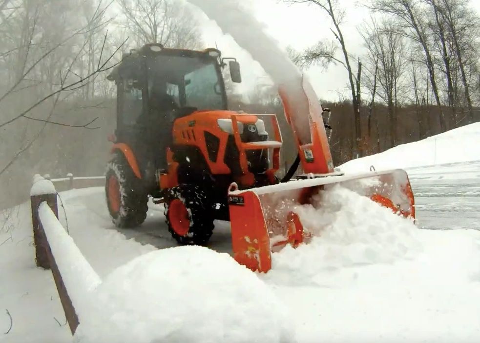 We use a compact tractor equipped with a blower to clear your driveway right to the edges — no heavy piles, no torn-up turf.